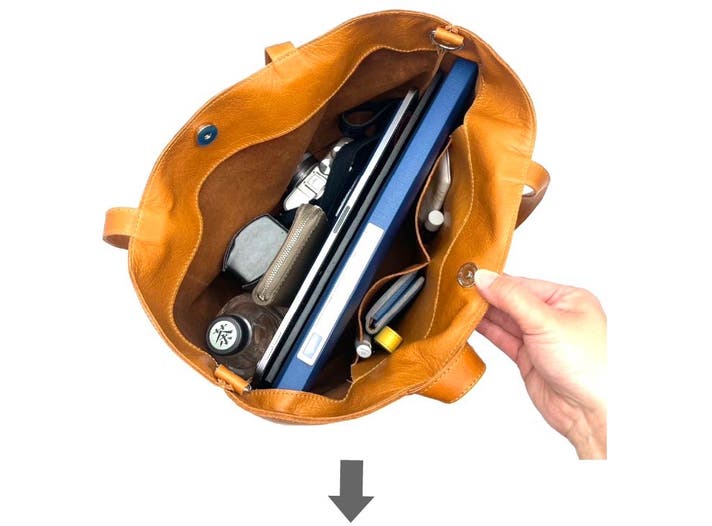 裏地がなくても、気にせずにハンカチやガジェットなどを入れて気軽に持つことが出来ます。