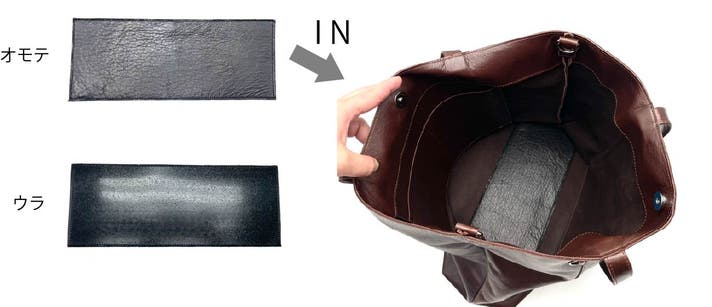 柔らかい革なのでバッグの変形が気になる方や底を安定させたい方には底板の追加がオススメです。