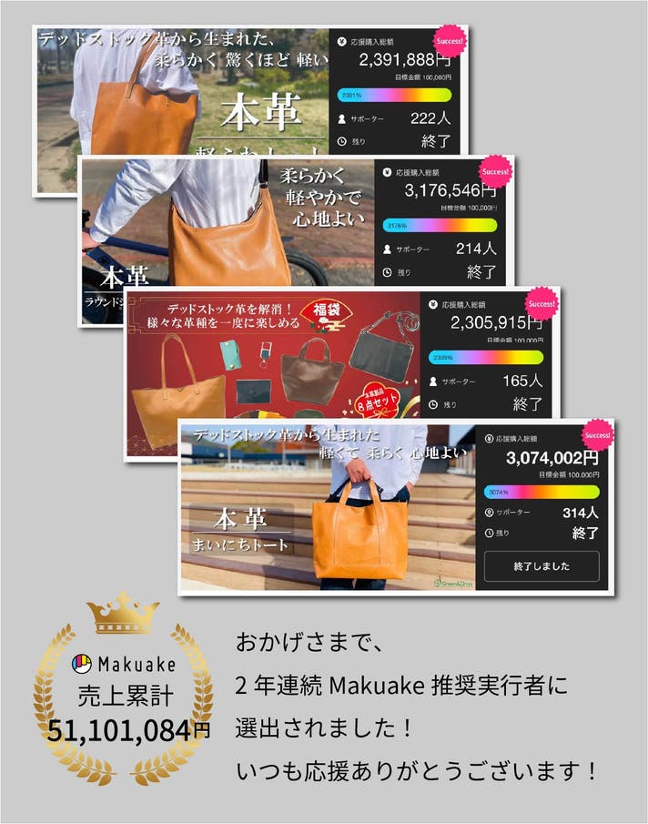 過去にたくさんのプロジェクトを実施してきました。そして現在2年連続Makuake推奨実行者にも選出いただき、本当に感謝の気持ちでいっぱいです。いつも皆さまからの温かいコメントやメッセージに励まされ、今日までプロジェクトを続けてこれました。