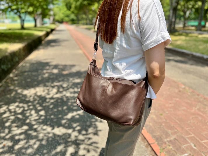 『本革POKEショルダー』に使用した革は、軽くて柔らかい革です。持った瞬間から手に馴染み、肌に吸い付くような柔らかい使い心地を実感してください。
