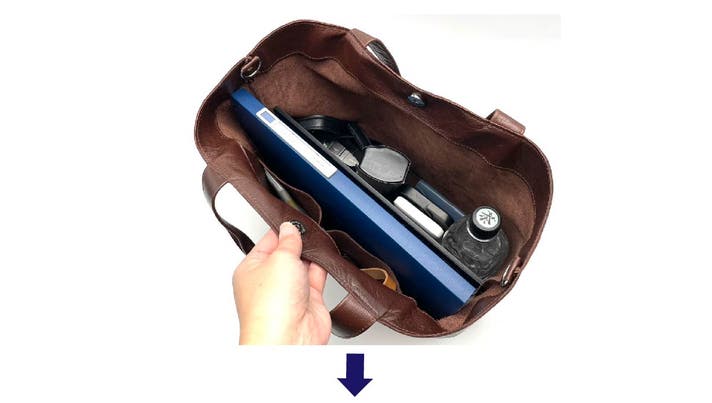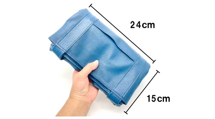 柔らかい革なので、底板を外すとコンパクトにまとめることができ、折り畳みも可能です。旅行やサブバッグとしても◎。
