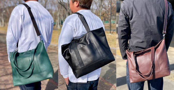 - 3way仕様になる!本革だけど軽くて柔らかい使い心地で日々寄り添う『まいにちレザートート』