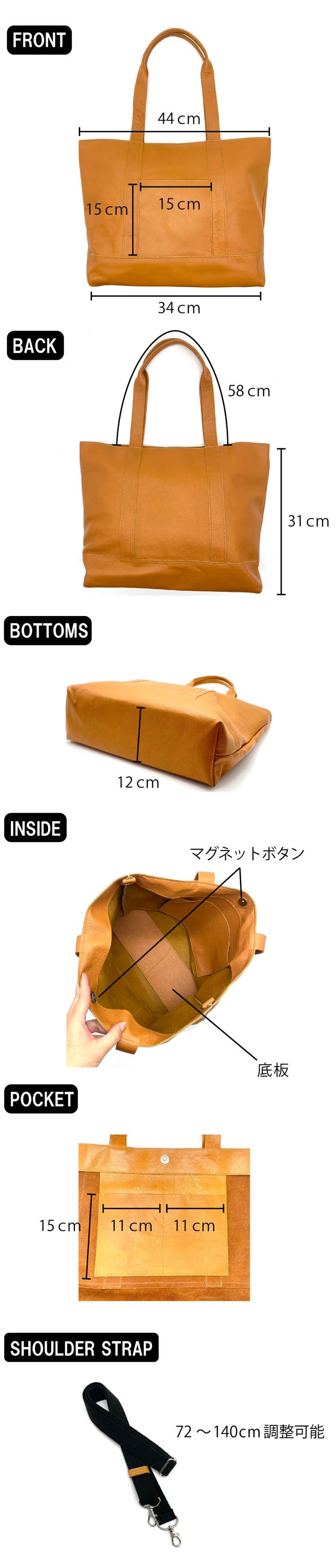 ◆サイズ:タテ31㎝×ヨコ34㎝×マチ12cm(開口部44㎝)