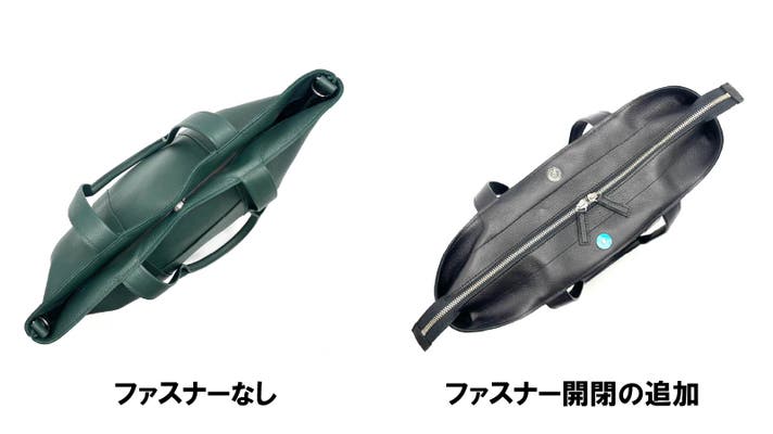 ファスナーが欲しいという方のために、オプションでファスナー追加が可能です。