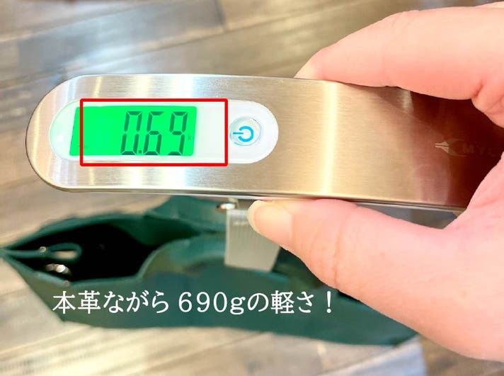 高級感を損なわない厚みと重さを感じさせない、『1.3mm厚と重さ約700g』バッグのサイズ感からも、ここがベストなラインになりました。