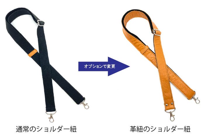 通常のショルダー紐は、しなやかでハリとコシのあるアクリルテープを使用しています。