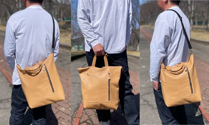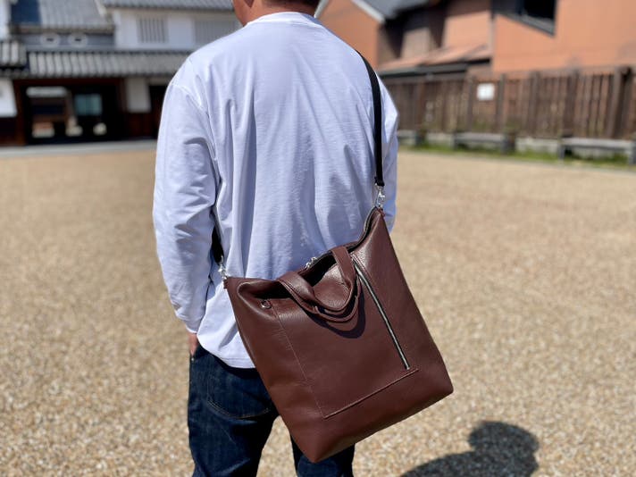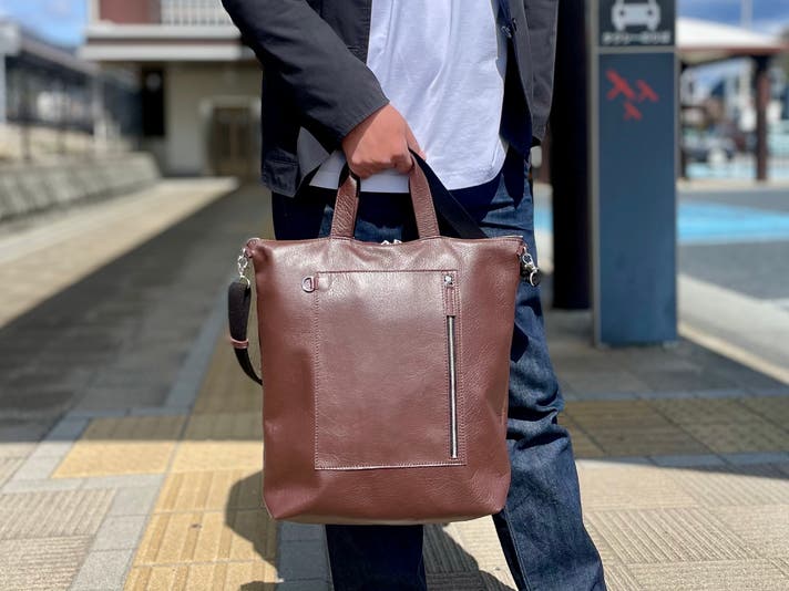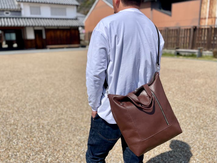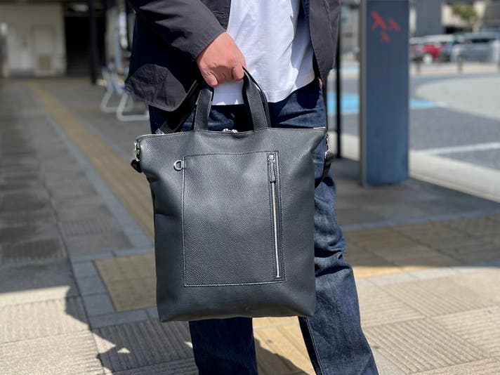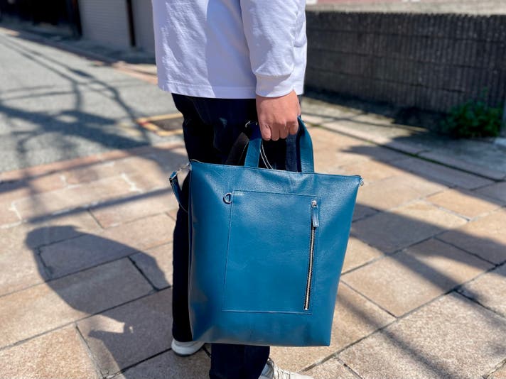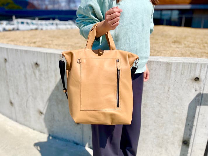 - 「革は重い」という常識を覆す、約470g。軽くもっと気軽にラフに使えるトートバッグ