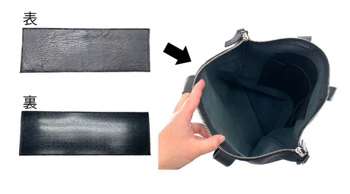 柔らかい革なのでバッグの変形が気になる方や底を安定させたい方には底板の追加がオススメ。