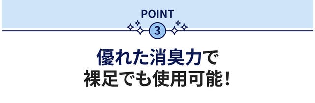 優れた消臭力で裸足でも使用可能なので、サンダルや靴下を履かない方にもおススメです!