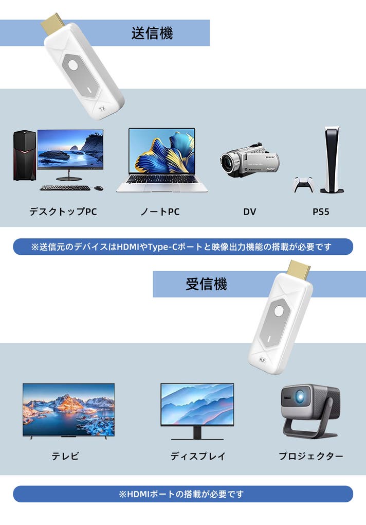 本製品を輸入しようと考えた理由は、ビジネスシーンや家庭において「ケーブル接続の煩わしさをなくしたい」というニーズが年々高まっているためです。特に会議室・教室・自宅のテレビなど、誰でも簡単にワイヤレスで映せる環境を求める声は多くあります。本製品は最大50mの安定した伝送距離を実現しており、接続操作もシンプルで、機器に詳しくない方でもすぐ使えるという利便性があります。大がかりな設定やWi-Fi環境が不要で、差し込むだけで画面共有できる点は、多くのユーザーにとって大きなメリットになると思います。