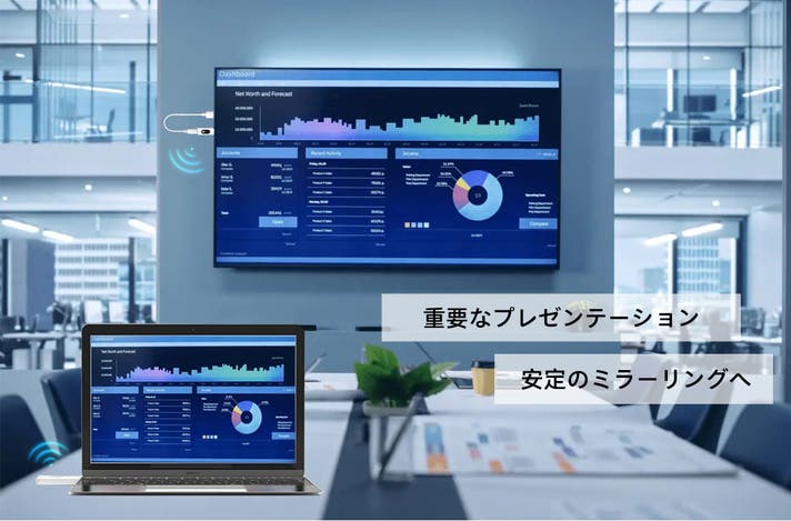ミラーモードを使えば、送信元の画面をそのまま受信側に投影でき、同じ画面をすぐに共有可能。会議やプレゼン、動画鑑賞、ゲームなど、幅広いシーンで便利に使えます。