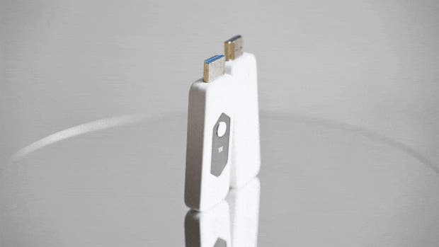 ワイヤレスミラーリングアダプターDT-Eは本格的な1080P/60Hzストリーミングに対応しながら、このサイズ感!