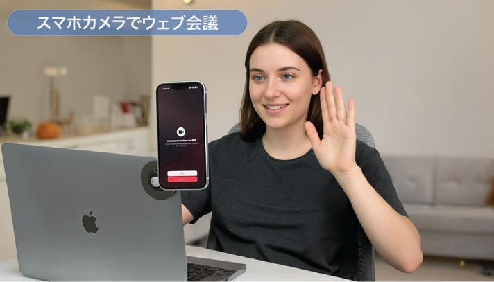 スマホの高性能バックカメラをPCのWebカメラとしてミーティングや配信に活用可能。カメラ位置をやや高めに固定できるため、ハイアングルから顔を明るく、すっきりと美しく映し出します。目線が自然になり姿勢も良く見えるので、オンライン会議でもプロフェッショナルな印象を与えられ、小顔効果も期待できます。