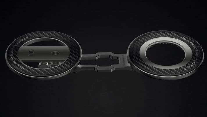 ほとんどのAndroid端末にはMagSafeのようなリング型磁石が内蔵されていないため、Dual Magic Ring Proを直接吸着することはできません。Dual Magic Ring Proをご利用いただくには、Dual Magic Ring Proに付属している新型メタルリングをAndroid端末の背面に貼付してください。