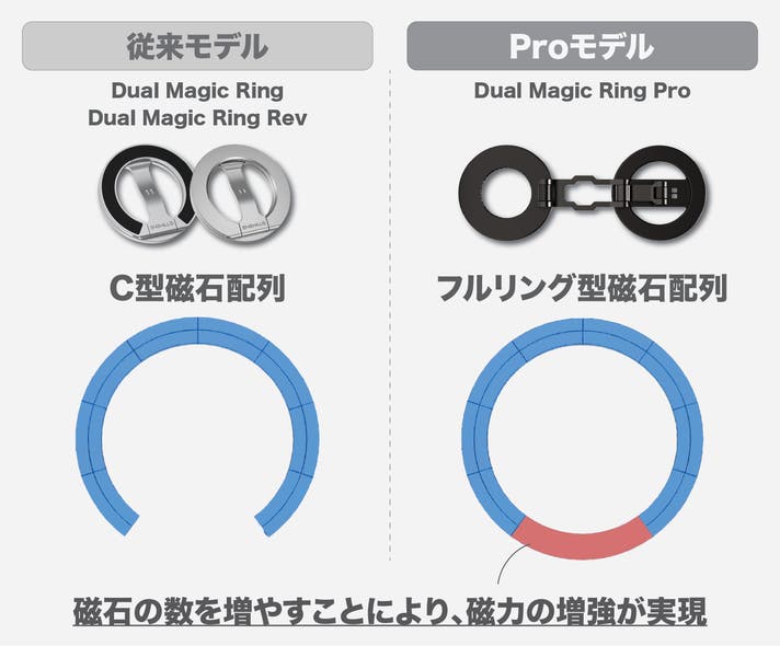 ※当社従来モデル(Dual Magic Ring/Dual Magic Ring Rev)との比較。使用環境・貼付面・ケースやメタルプレートの有無により測定結果が変動します。