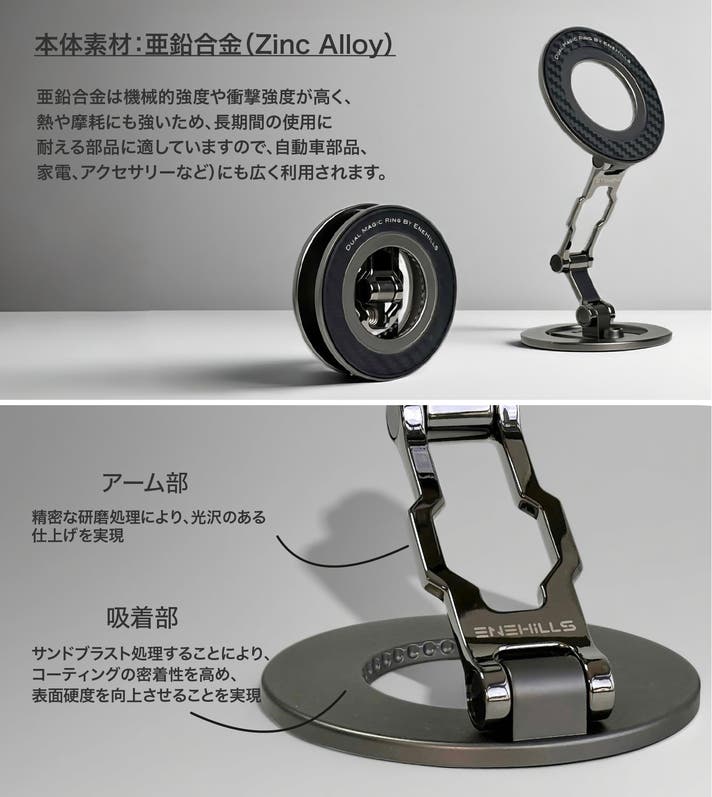 - 【重量級の保持力】N52ネオジム磁石をフルリング配列。直径5mmの極太回転軸を採用。