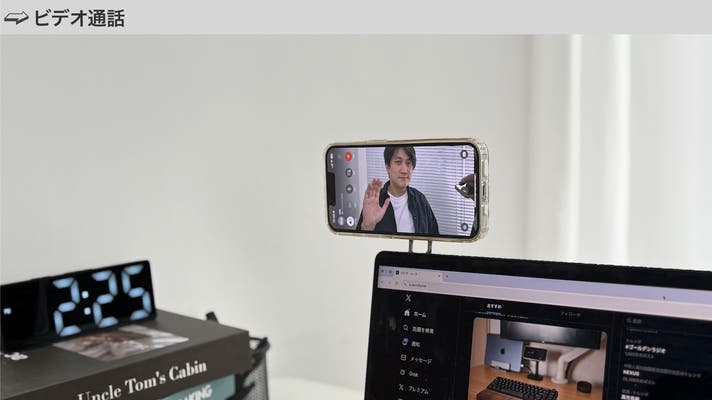 スマホをPCモニターと同じ向き・高さに固定でき、視線移動を最小限にしながら同時作業が可能。パソコンで資料を見つつ、スマホでチャット確認や通話・撮影・配信などをスムーズに行え、デスク周りの作業効率がぐっと向上。スマホをサブディスプレイとして在宅勤務からゲーム配信まで幅広く活躍します。