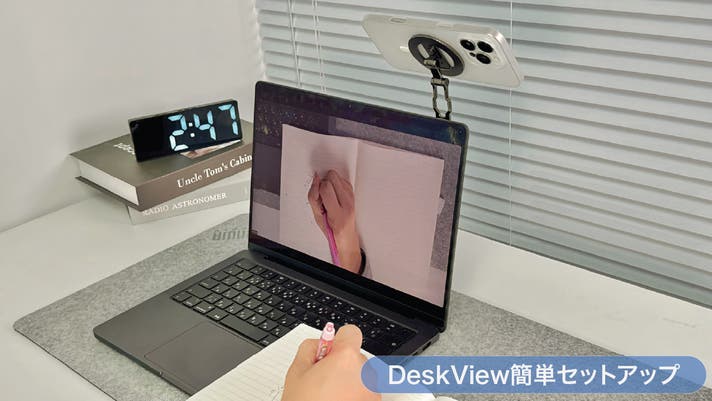 Dual Magic Ring ProでスマホをPCモニター背面に装着でき、一人称の目線で手元を映せるDeskView機能のセットアップがより簡単・スムーズに行えます。