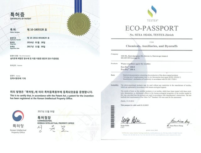 韓国で特許取得技術 超撥水シリコンコーテイング素材