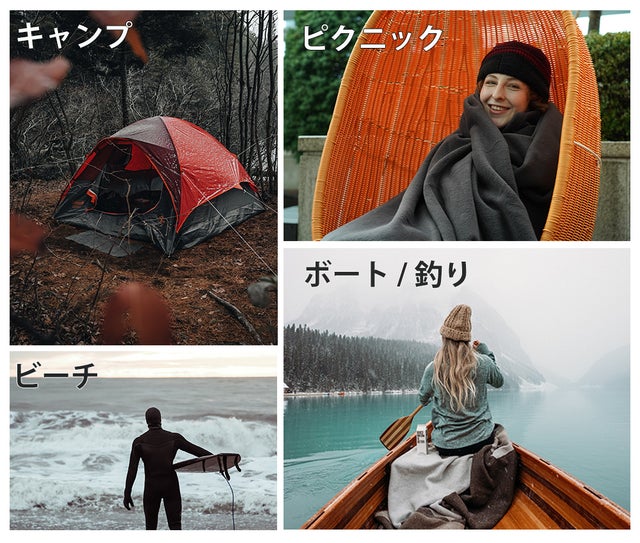DULLO どこでもフリースブランケットは屋内、屋外、どこでも使用できるよう設計されています。起毛しているのに水をしっかりと弾く「超撥水」加工。肌触りも気持ちが良い。