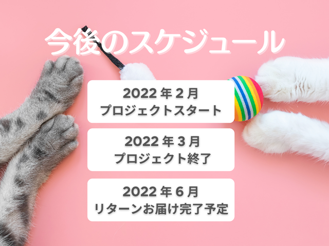このプロジェクトはAll in型です。目標金額の達成に関わらず、プロジェクト終了日の2022年03月30日までに支払いを完了した時点で購入が成立します。