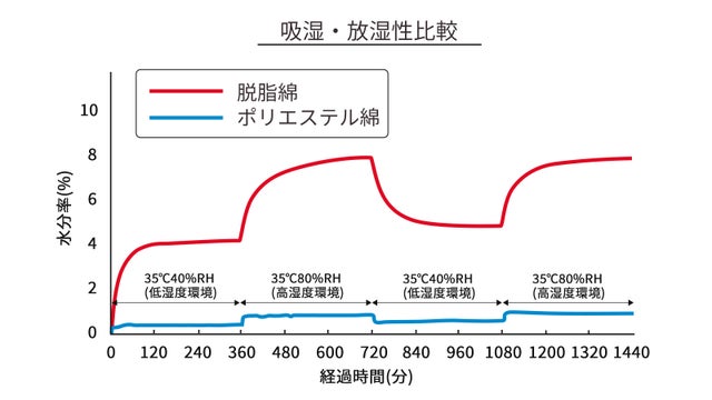 脱脂綿は、ポリエステルわたに比べて、各段に吸水性が優れています。