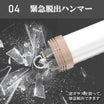 火事や洪水など緊急時の脱出に役立つガラス破砕先端で、素早く車外に脱出できるようにします。