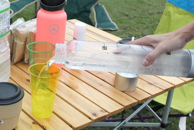 - 電源不要!ご自宅やアウトドアなど様々なシーンで自分好みの炭酸飲料ができる