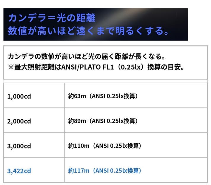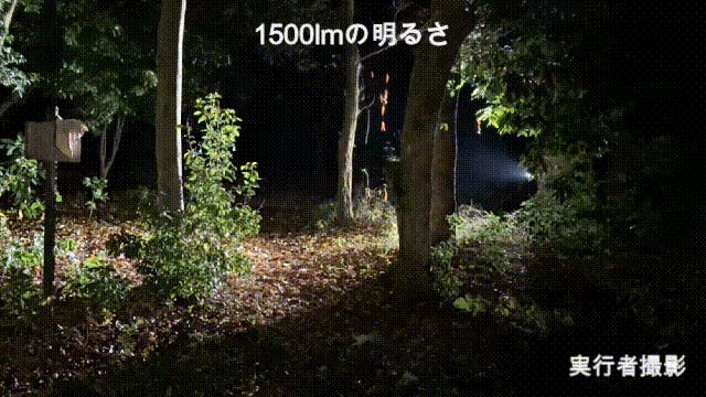 A. 最大約1500ルーメンで、カタログ値で約117m先まで照らせます。