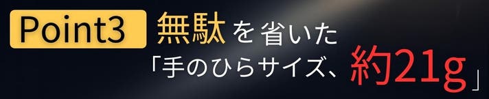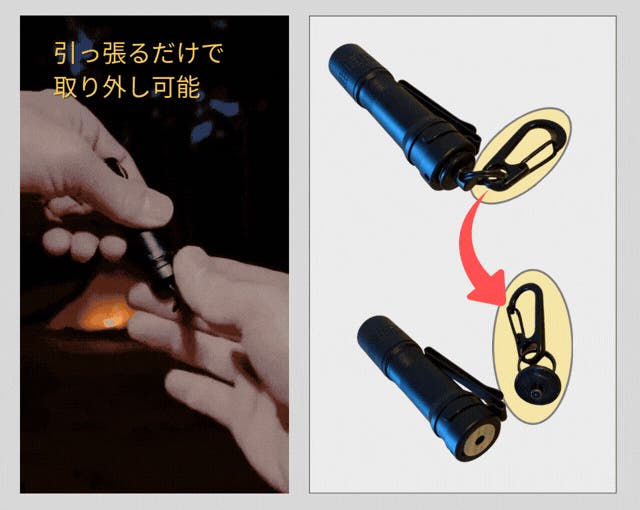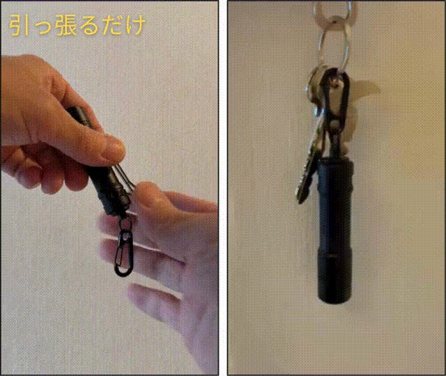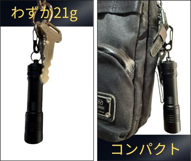 - わずか21g。 キーホルダーから片手で外して、 先端をひねるだけで1500ルーメン