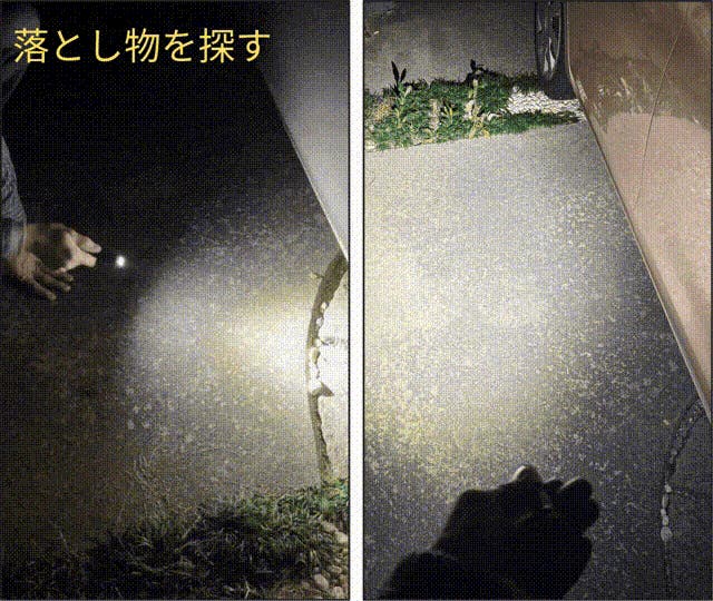 住宅街の夜道や駐輪場なら、足元と周囲をしっかり確認できる明るさです。