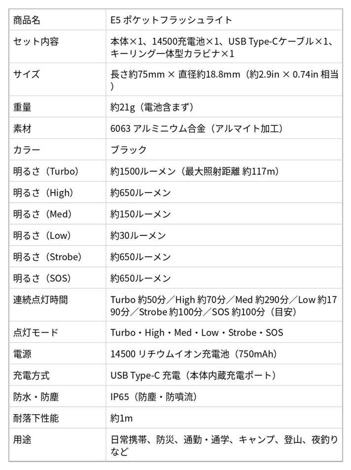 E5懐中電灯 【Makuake割】39%OFF 限定300名