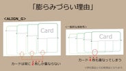 一般的な財布が膨らんでしまう原因は、解説画像の様にカードの厚みが中央に重なってしまう事が要因です。この要因で、ファスナーに負荷がかかり開閉時のすべりが悪くなる場合もあります。「ALIGN_G(アライン_ジー)」は解説画像の様にカード段に4枚入れてもカード同士の重なりが常に2枚になる仕様で厚みが均一になり極端に1部分が膨らんでしまうという現象が起きづらい独自設計。これにより財布自体が崩れにくく膨らみづらくなります。