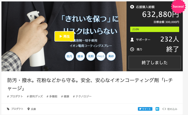2019年5月に実施しました『防汚・撥水。花粉などから守る。安全、安心なイオンコーティング剤「i-チャージ」』では多くの方々に応援をいただきましてありがとうございます!