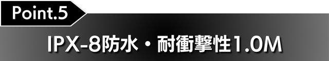 防水性能IPX‐8防水と耐衝撃性1.0M