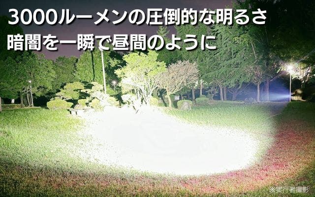 ターボモードは3000ルーメンの明るさで暗闇を一瞬で明るく照らします。