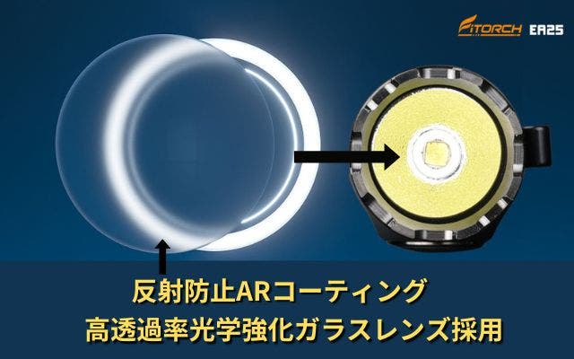 明るさの秘密は高照射LUMINUS SST70 LED。 *反射防止ARコーティングを施した高透過率光学強化ガラスレンズを採用しているからです。