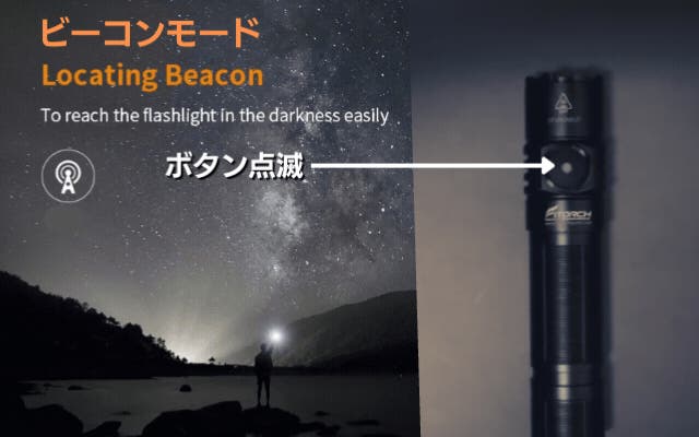 ビーコンモードではEA25を枕元や分かり易いところに置いておけば、ボタンの明かりが目印になり暗闇でもすぐ手に取れます。