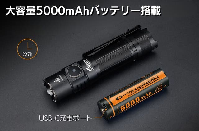 大容量ハイパワー 5000mAh:21700リチウムイオン電池搭載