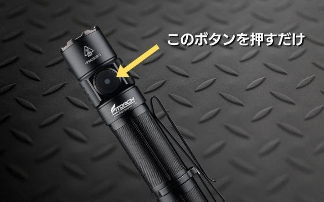 市販されている懐中電灯のルーメンは約50~100ルーメンが多く、300ルーメン以上になると高輝度で明るいと言われています。しかし「EA25」のターボモードはさらに10倍の3000ルーメンの高輝度で暗闇を一瞬で明るく照らします。