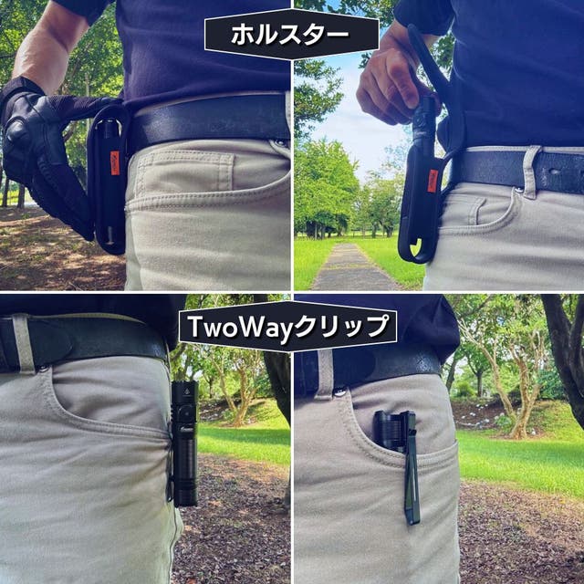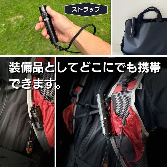 付属のホルスターやストラップを使って装備品として日常持ちや、キャンプ、登山、ハイキング、散歩、災害時などで持ち歩くことが出来ます。