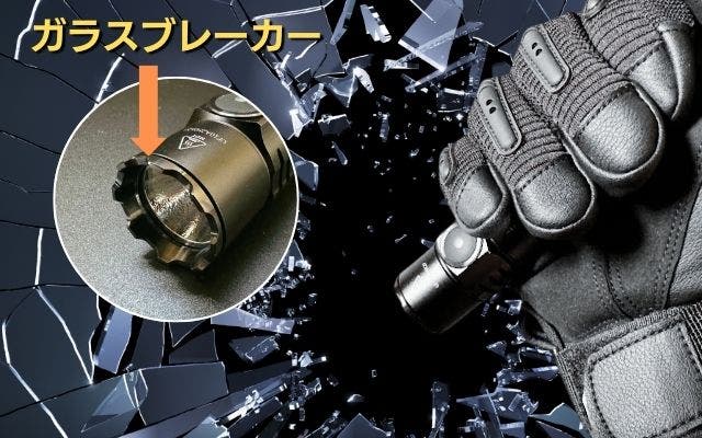 先端のガラスブレーカーで車からの緊急脱出や、防犯時の護身道具としても役立ちます。