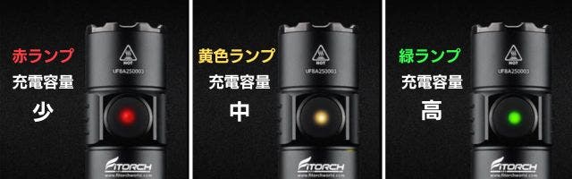 ライト点灯時のボタンランプ点灯(約5秒間)で充電容量の確認も出来ます。
