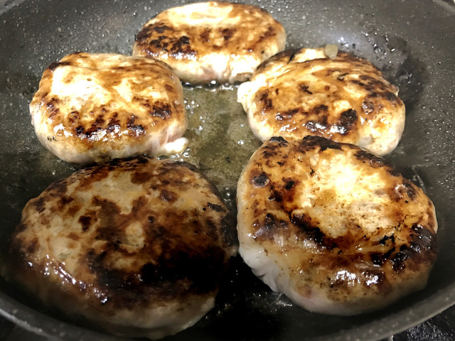 ・ハンバーグ表面だけ強火で焼きその後、中弱火で焼いてから蓋を占めた状態で蒸し焼きにしています。