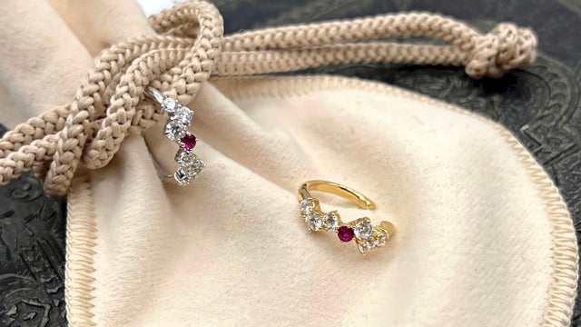 - ピジョンブラッドを感じさせる赤い色を秘めた希少なルビーを使用したイヤーカフ
