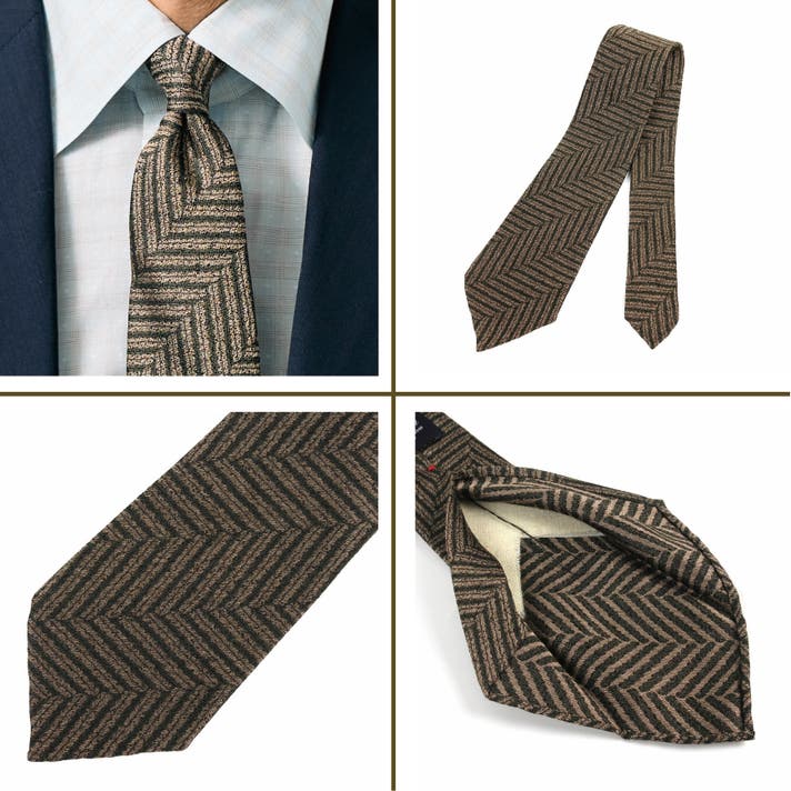 - ジャカード織りで柄を立体的に表現しつつ、糸や織り方、仕立てにこだわったネクタイ
