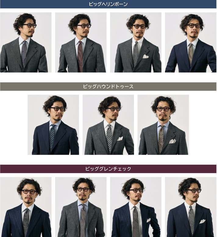 今回「四方章敬プロデュースのエアリータイ」は、“ヘリンボーン”“ハウンドトゥース”“グレンチェック”というクラシックな英国調柄をベースに、3タイプの柄を用意しています。