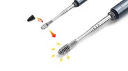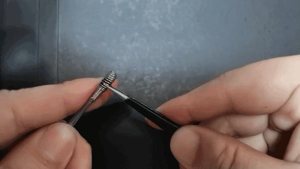 コイル型の先端を使用する場合は、ピンセットなどを使って炭素繊維スポンジを先端に仕込んで下さい。※ピンセットは付属しません。