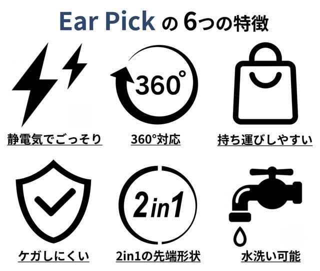 Ear Pickは通常タイプと360°タイプの2つの先端を備えており、使い分けができます。