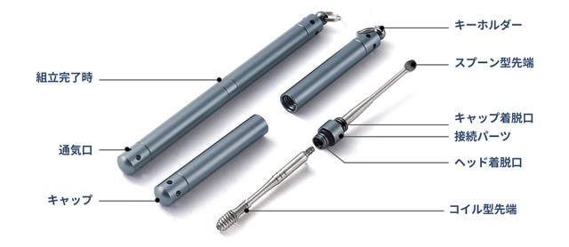 Ear Pickの特徴は、コイル状の先端に仕込む炭素繊維スポンジが、静電気の力で微細な耳垢も吸着できる点です。